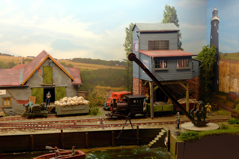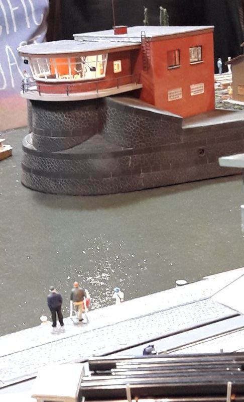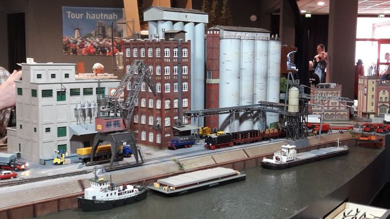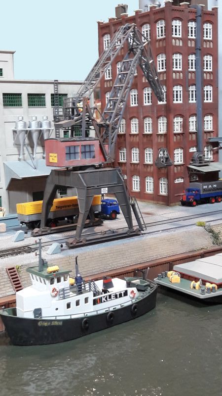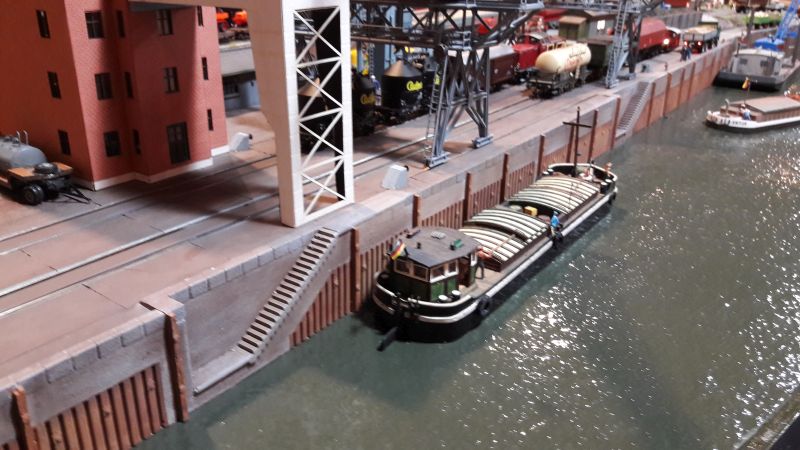 Ganz herausragend gelungen war diese Hafenanlage, die von beiden Seiten zu besichtigen (und zu bewundern!) war. Auch hier jedes kleinste Detail sehr naturgetreu gestaltet. Die Kräne sind teils wohl lLaser-Cut-Modelle.