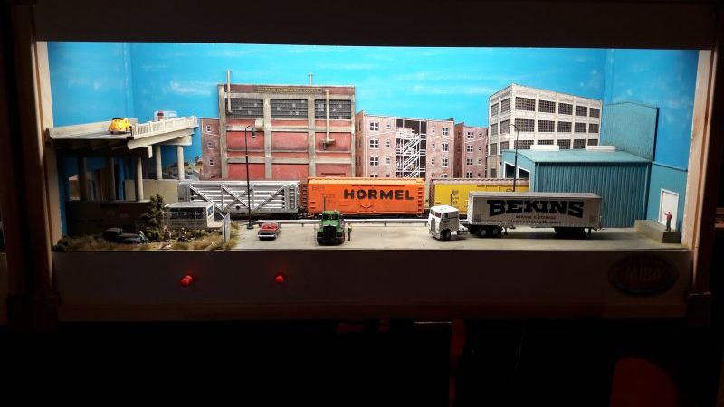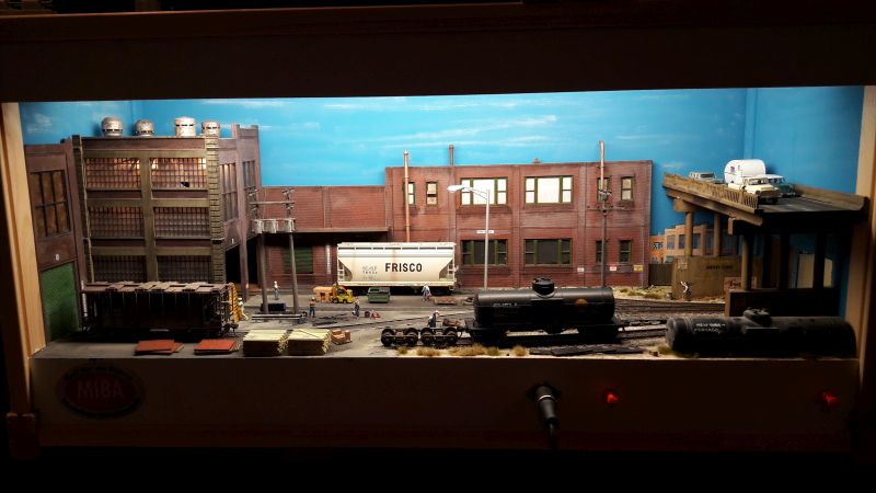 Hier sehen wir ein "Doppel-Diorama" mit US-Themen: Schön gelungen ist die Kombination aus voll-plastischen Gebäuden (oben, links),