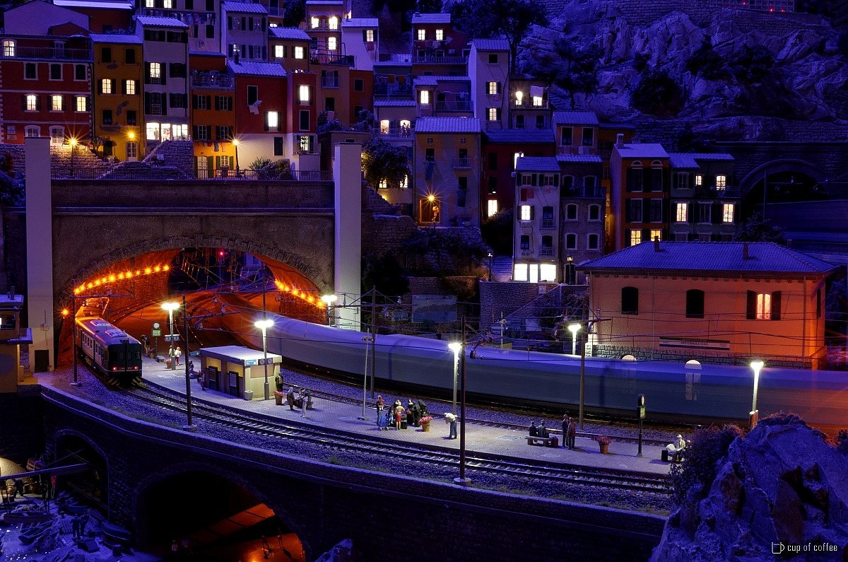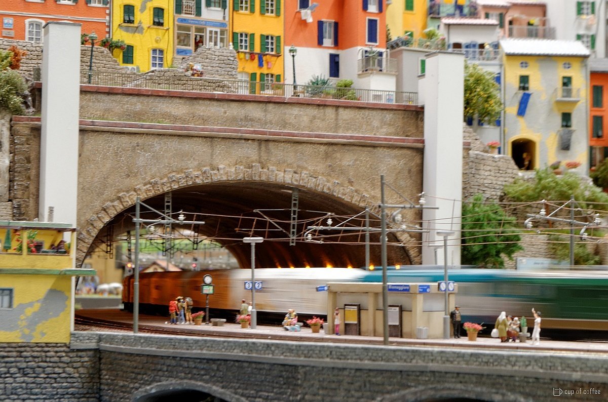 Hier donnert gerade ein Güterzug durch das malerische Städtchen. .