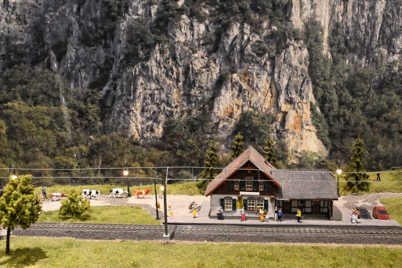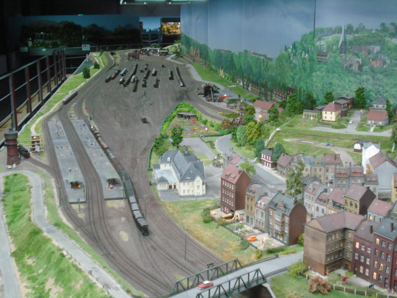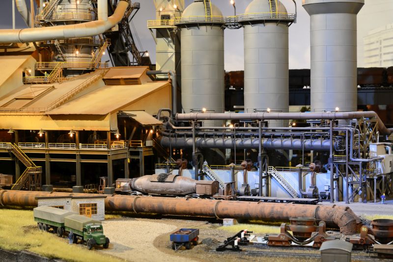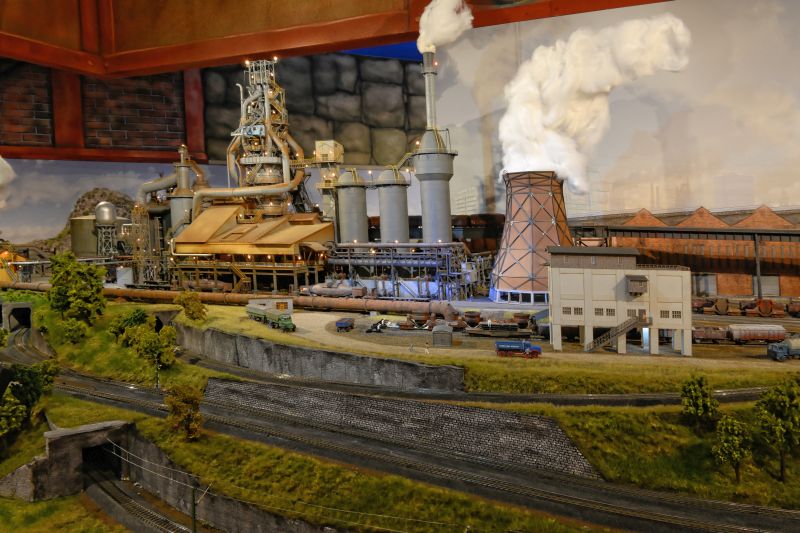 Oktorail ist eine neue, ebenfalls mit Teilen des Ruhrgebiets bestückte neue Anlage im Gruga Park in Essen. Verwendet Märklin C-Gleise was ich persönlich, für eine solche Schauanlage aufgrund der fehlenden Flexgleise, nicht so schön finde. Eine durchaus mit sehr viel Liebe erbaute Anlage, bei der vor allem die Industrie Gebäude einen wirklich nur staunen lassen