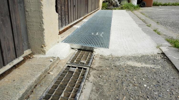 Jedenfalls hielten die Gitter nicht ohne Hilfe in der Rinne fest, eigentlich ist da eh sogar zu wenig Luft zu den "Stein"-Rändern. Ein wenig fest halten sollten die Gitter ja dennoch, denn allein wegen eines Batteriewechsels wird das Teil schon mal auf den Kopf gestellt werden.