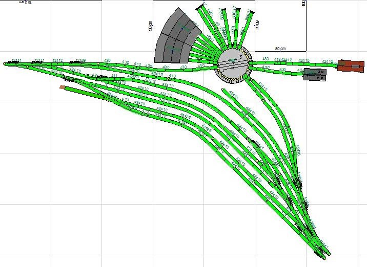 das kommt der Sache schon näher. Ich müsste jetzt mal einen Teil Deiner Gleisanlage (virtuell)nachbauen, um meine Vorstellung im Bild Zeigen zu können. Ist aber rasch erklärt: