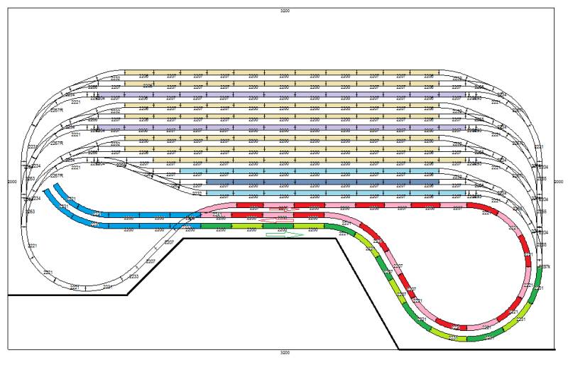 PS.: Ich habe die Gleisnummern der Übersichtlichkeit halber weggelassen - wenn Du den Plan so gut findest dass Du ihn (teilweise) nachbauen willst, würde ich ihn zuvor nochmal auf die neuen Maße der Anlage anpassen.
