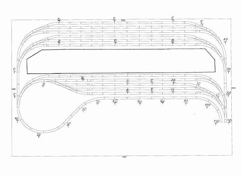 Ich werden den Plan allerdings nochmal überarbeiten, denn nach meinem Dafürhalten wäre es zwecks späterer "Klappen" bzw. "Löcher" besser, den 40cm breiten "Gang" nicht am hinteren Anlagenrand zu lassen, sondern mehr in der Mitte.