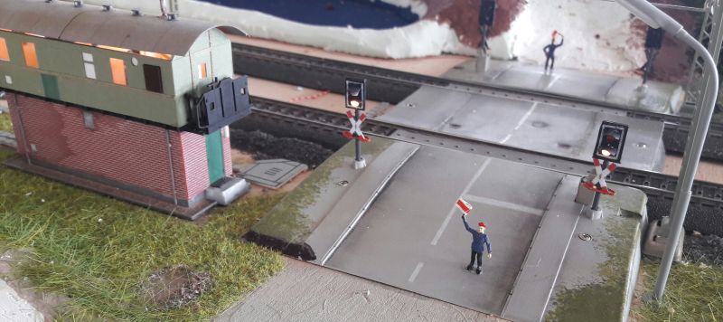 Schön gemacht, es sieht gut und fachmännisch aus. Jetzt muss nur noch dafür gesorgt werden, dass die beiden STOP-Männeken bei gelb die Straße betreten bzw. verlassen, so lange die Schranken noch in der Werkstatt sind, denn ohne Schranken geht das ja nun mal überhaupt gar nicht.
