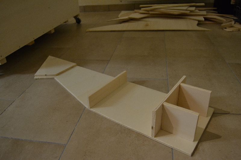 Wie beim ersten Abschnitt wurden alle Spanten sorgfältig geplant und auch alle Flächen geplant und ausgeschnitten. Alles aufgebaut: