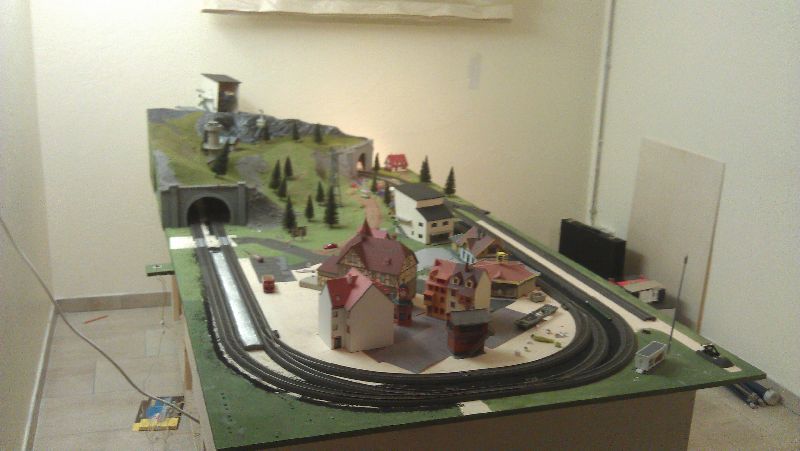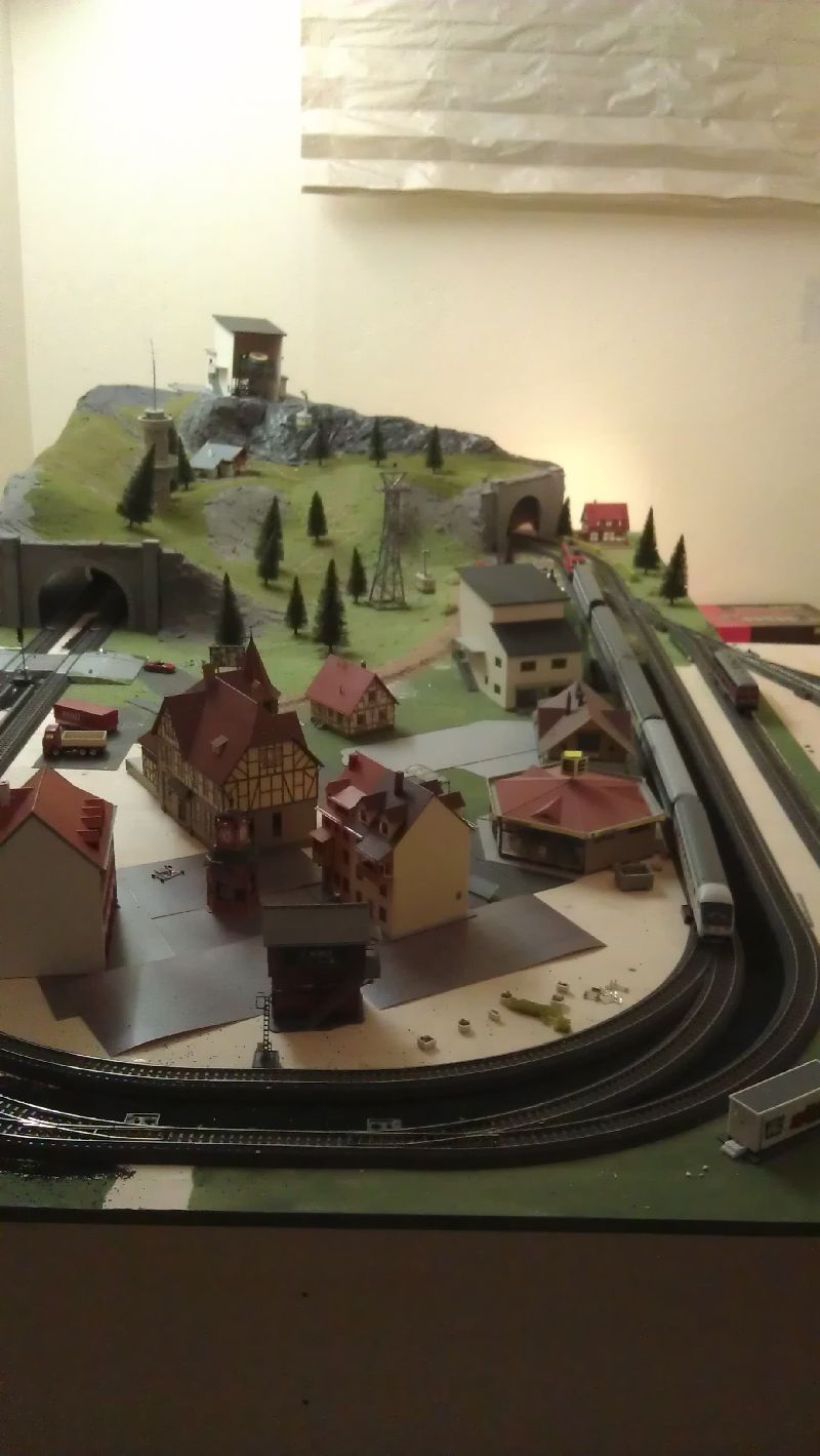 Diese Bahn baute ich auf einer Platte zusammen mit meinem Vater. Sie wurde mit der Zeit immer weiter ergänzt.