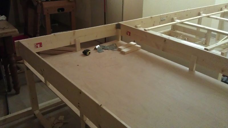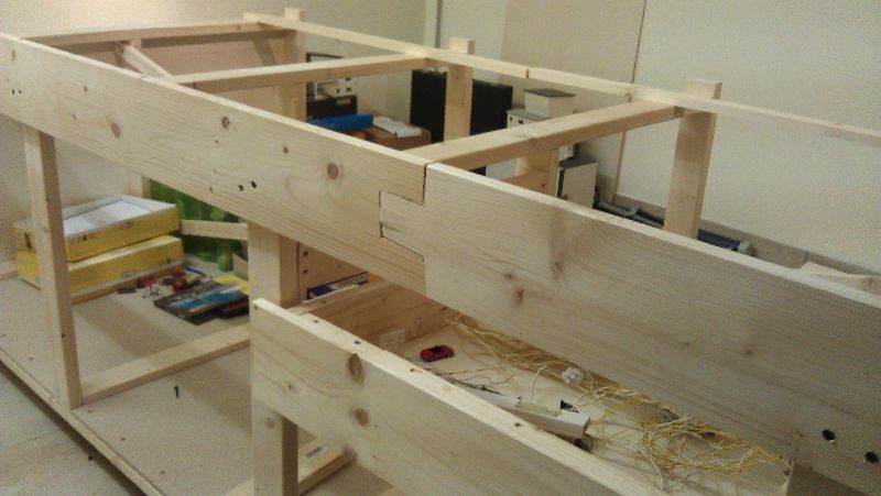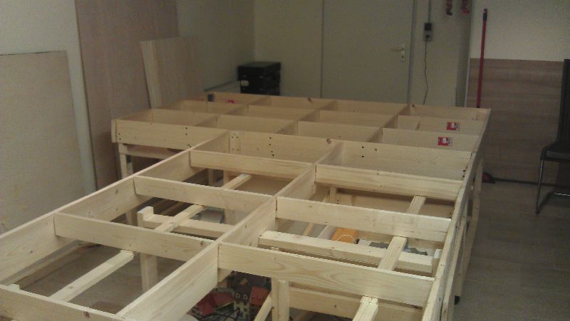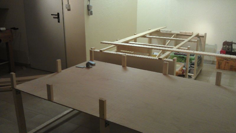 Als erstes brauchte ich natürlich einen vernünftigen Rahmen für die ca 6qm große Anlage. Dieser wurde auf die vorhandenen Untergestelle einfach drauf gebaut. Hier ein paar Bilder dazu: