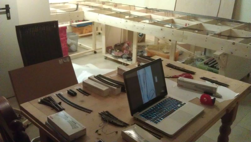 Mithilfe des Laptops wurden dann die Gleise erstmal verlegt…