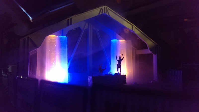 ich möchte hier mal meine neue Bühne vorstellen. Die Lichttechnik funktioniert mit einer 3 Kanal Lichtorgel und einer Nebelmaschine.