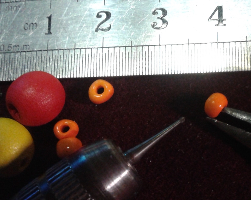 Etwas Material hat man sicher im Hause: aus Tochters Bastelkästchen nehmen wir uns (lassen uns geben!) einige Zierperlen von hinreichend kleinem Durchmesser.