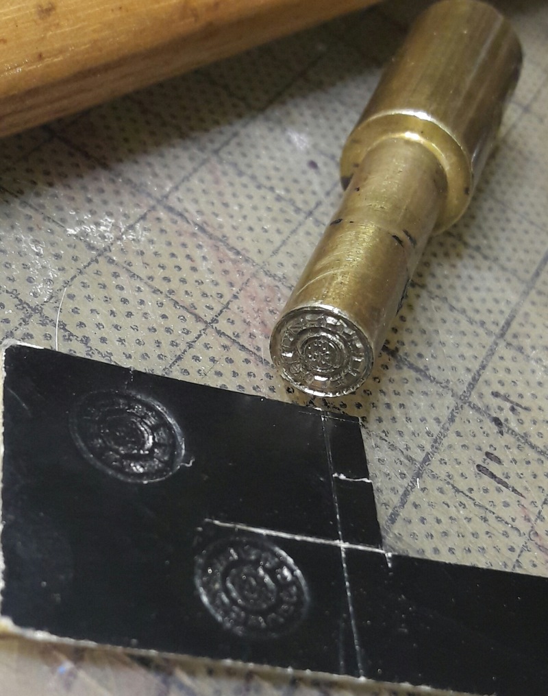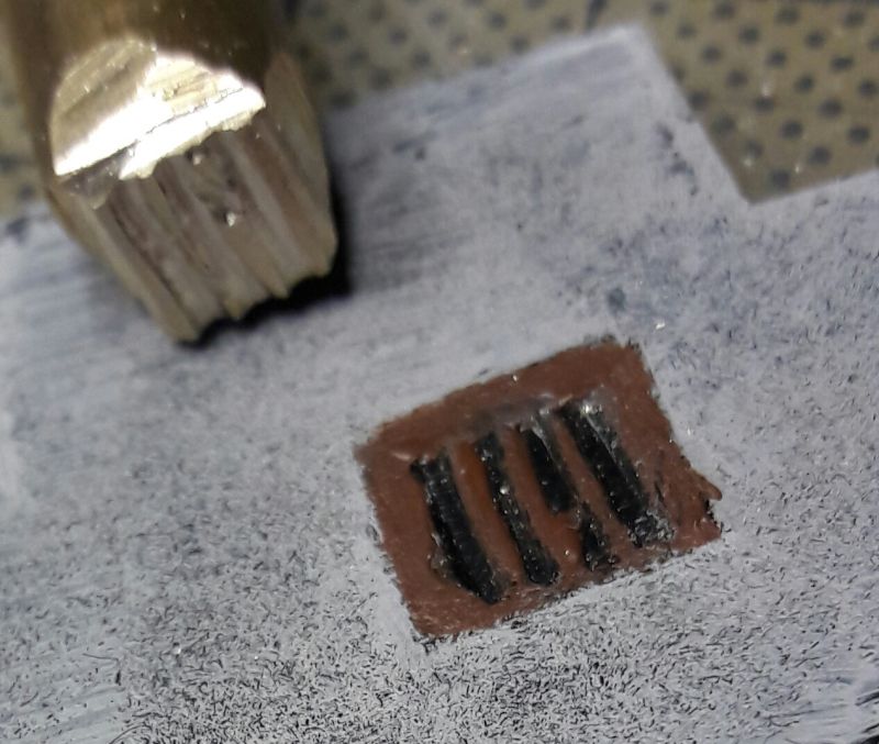 Kleines schnelles Werkzeug - großartige Lösung! Das "Stempeln" ist eine häufiger genutzte Möglichkeit, sich wiederholende flachere Motive zu erstellen. Beispielsweise mit einer umgedrehten Kugelschreibermine aus Messingrohr ein altes Straßenpflaster usw.