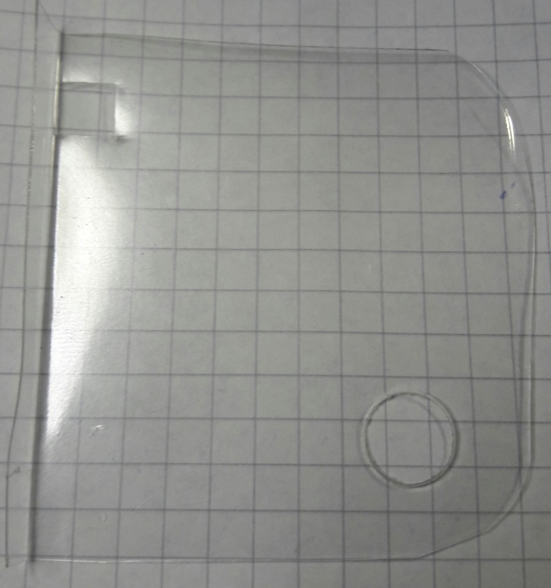Eine kleine Schablone, die ein klein wenig größer ist als das Netto-Rillenmuster.