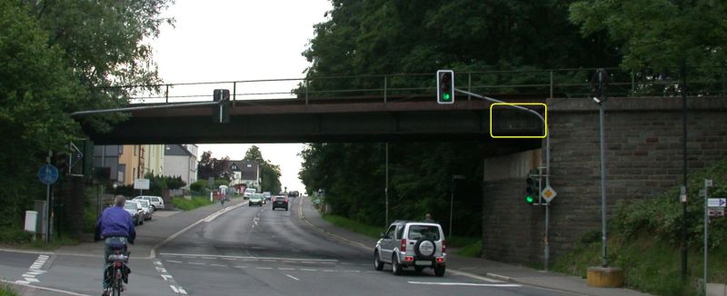 seit Jahren komme ich bei uns im Ort jeden Tag zweimal an dieser Stelle vorbei: Hier quert die RB-25-Strecke Köln - Gummersbach in Rösrath die Kölner Straße auf einer Brücke. (Google-Maps-Koordinaten: 50.894996, 7.177752)