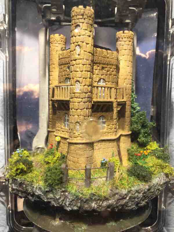 Im Netz habe ich ein Bild des Broadwaytowers in Rngland gesehen. Daraufhin war mir klar, dass ich so einen Turm brauche. Also nichts wie ans Werk. Der Turm ist aus Gips in mehreren Teilen entstanden. Den Unterteil habe ich modelliert.