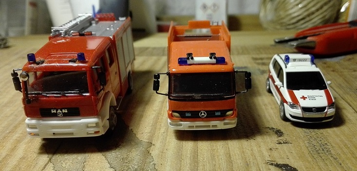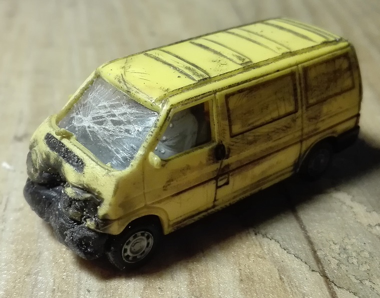 http://forum.miniatur-wunderland.de/dow ... hp?id=6755 - bei stark gestauchten und eingeknickten Fahrzeugen schneide ich aus der Bodenplatte z.B. Keile aus, klebe und forme das entsprechend und passe die Karosserie und das Innenleben an.)