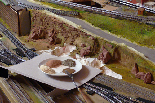 Eine andere Methode ist, wenn man mit Abgüssen von Felsformen arbeitet. Die Firma Noch bietet solche an oder man macht sich selber welche aus Latex. Die Abgüsse kann man dann vermauern und gestaltet mit der obigen Methode nur noch die Zwischenräume der Felsabgüsse. Such mal im Netz unter "rock molds" oder "Felsformen". Da gibt es genug.