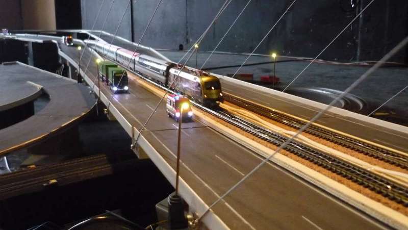 Die Teppichbahn Premiere ist vorbei - hier vorab schonmal 2 Bilder vom Treffen. Das Terminal war etwas länger als 2m, 2 Krane, das ganze angeschlossen an die Car System Autobahn, die über die 11m lange Schrägseilbrücke geht: