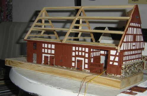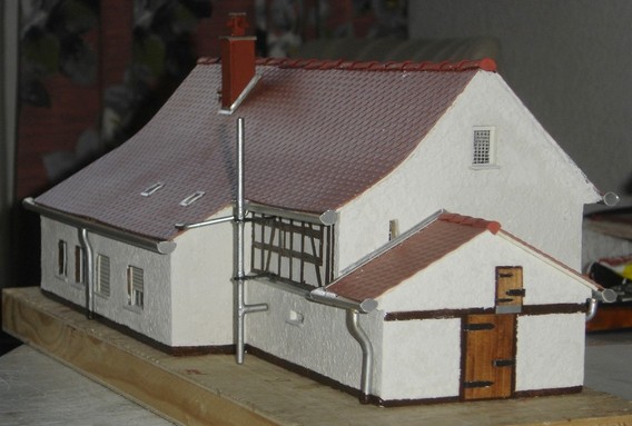 Also die Säge habe ich beim Bauhaus für 169 € gekauft. Das Styrodur was Du meinst ist gar keins , dass Haus bzw. alle Bauten werden auf einer Holzgrundlage gebaut. Die Holzplatte die Du im Bild siehst ist nur dafür da das Haus von einem Tisch zum nächsten zu transportieren, so hat man die Möglichkeit das Gebäude in seiner Miniaturwelt überall zu plazieren und so ständig zu versetzen um keine Langeweile aufkommen zu lassen.