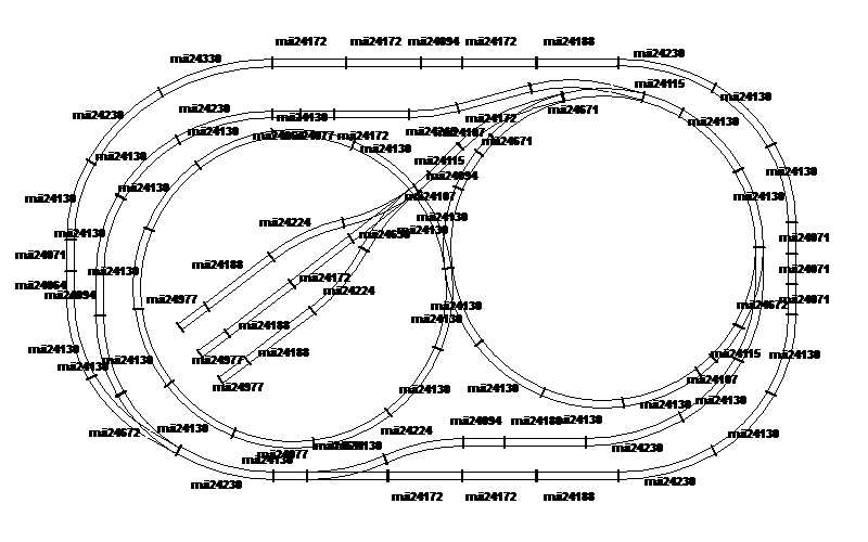 Oder eben das K-Gleis, für welches es ja einen Gleisplan gibt. Beim K-Gleis ist nur zu beachten, daß sich die Artikelnummern geändert haben: die Hunderterstelle der Artikelnummern sind schon lange eine "2" anstatt einer "1", also z.B. 2201 anstatt 2101.