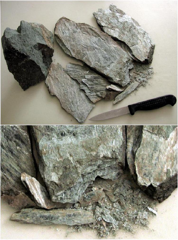 Mit dem kleinen Messer, Schicht um Schicht "abgebaut" -mit Geduld und etwas Abfall- ist Schiefer, aus dem Wallis oder überall her, nicht gewichtiger, aber um ein Mehrfaches schöner, lebendiger als jegliche Nachahmungsart von Stein.