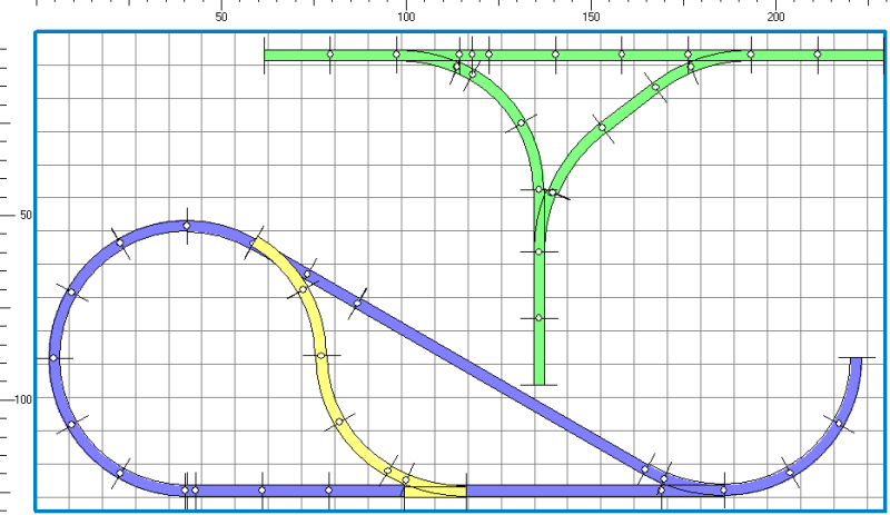 Nur damit Du ein Gefühl bekommst, welchen Raum auf Deiner Platte eine Kehrschleife oder ein Gleisdreieck beanspruchen: Anmerkung: Darstellung nutzt die Geometrie der Märklin-K-Gleise. Für C-Gleis sind Anpassungen notwendig.