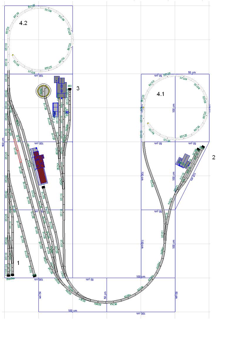 Unter den Bahnhofsmodulen wird ein Schattenbahnhof beheimatet sein. Dafür habe ich noch kein Gleisplan erstellt.