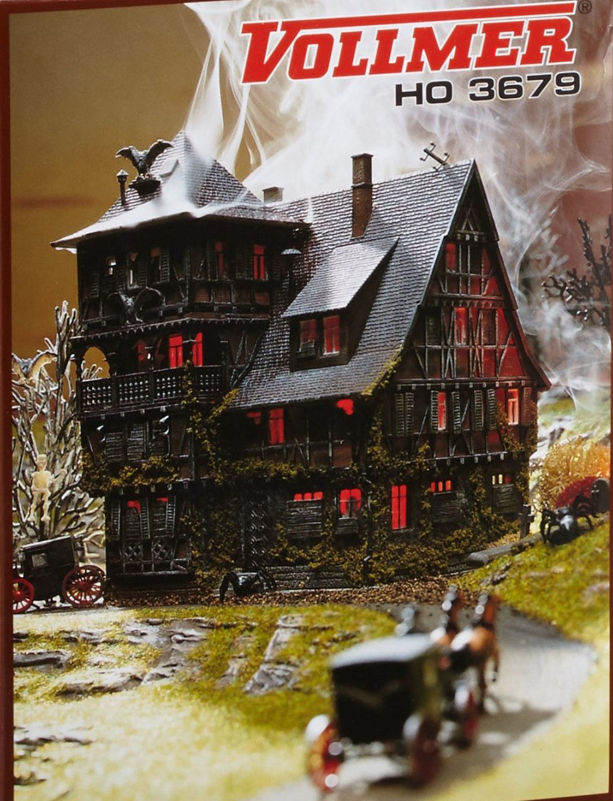 Als ich mir vor zwei Jahren Vollmers Vampirvilla angetan habe, wollte ich mal kurz, in ein paar Wochenenden bis Halloween, das Teil als Überraschung für meine Herzallerliebste, zusammenbauen. Sie fand es ja schliesslich auf dem Bild der Schachtel echt Klasse.