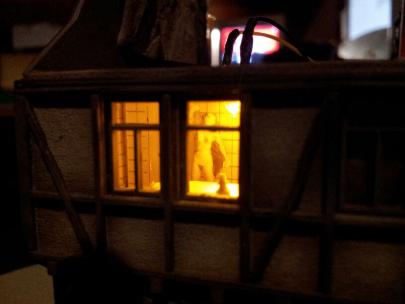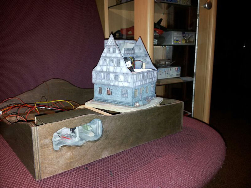 Vielleicht außen das Ganze mit einer hellen blauen LED bestrahlen. Das soll das Mondlicht sein.