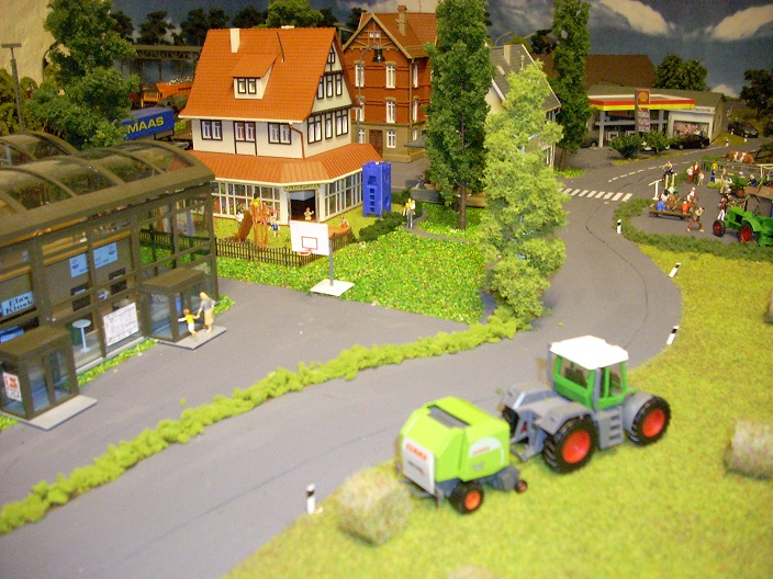 Ich habe auf meiner Anlage eine Heuernte nachgestellt .Dafür nahm ich die Rundballen von Faller .Diese habe ich mit Leim eingepinselt und mit Grasfasern eingestreut .