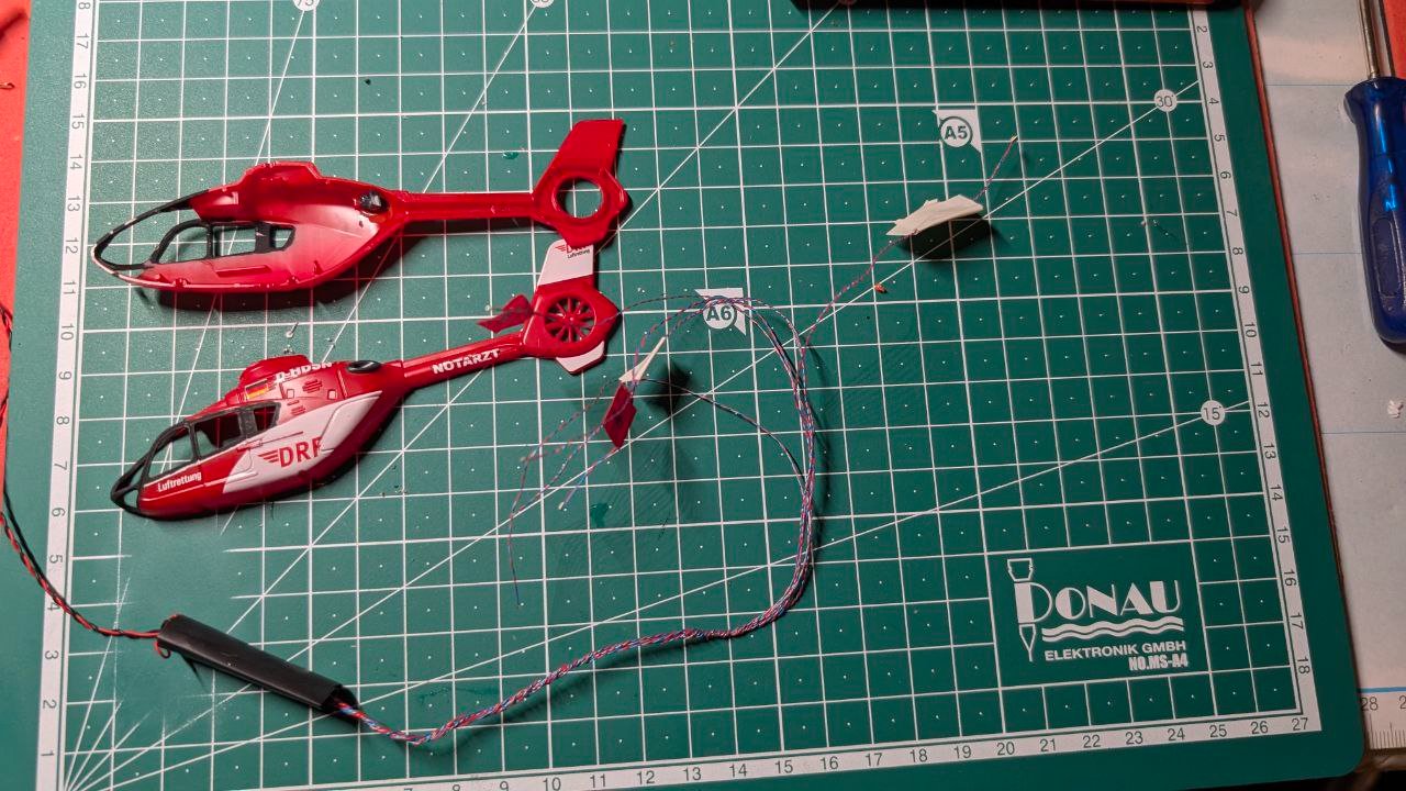 Einen EC 145 zu beleuchten, ist hinten an der Finne ziemlich knifflig, da ist wenig Platz für die vielen Lichter und Drähte, nur gut, dass Du Dir den wohl nicht vorgenommen hast...