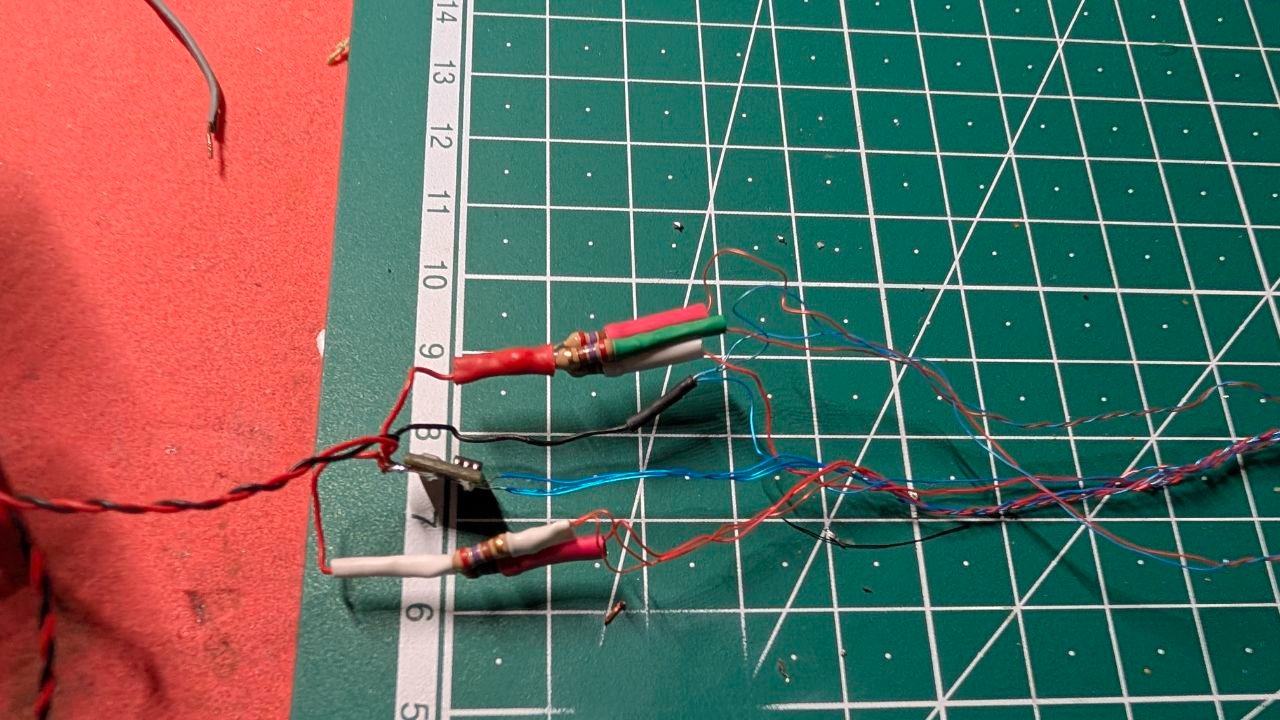 die Drähte zu den LEDs sind 0,3 mm dick. Hindernis sind wohl die großen Widerstände, da werde ich noch mal schauen, was da zu machen ist.
