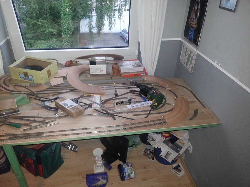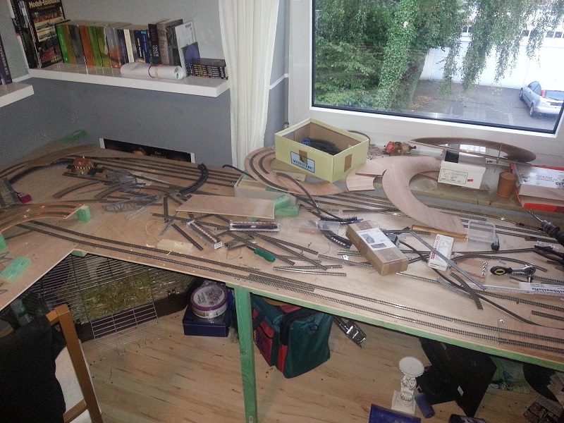 Soweit korrekt. Allerdings habe ich mir mal ausgerechnet, wie es mit einem Durchgangsbahnhof, wie z.B. Bonn HBF mit 5 Gleisen ist, auf der oberen Ebene und dann eben auf der Platte, wo der Kopfbahnhof hin sollte, aus Platzgründen dann ein BW mit Drehscheibe zu bauen. So kann ich dann auch etwas Rangierbetrieb betreiben.
