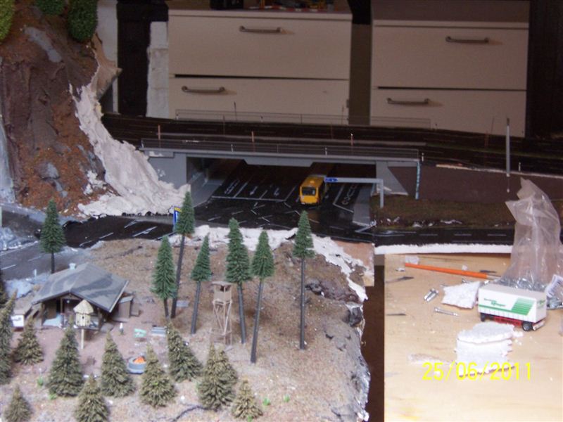 Ansonsten wäre es sicher sinnvoller gewesen, ein kürzeres Autobahnstück, aber dafür realistischer darzustellen. Auf meiner Anlage habe ich in meinen Schweizer Alpen ein Stück Autobahn dargestellt, welches zwar nur ca. 40 cm lang ist, aber trotzdem sehr realistisch wirkt.