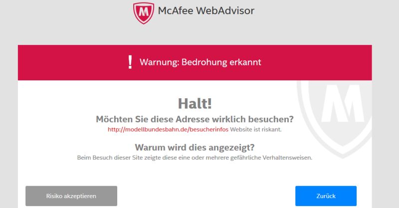 Ich habe auch McAfee hier laufen, der meckert bei dieser Adresse nicht. Richtig ist aber, dass die Webseiten mit JavaScript völlig überladen sind. Was für ein überflüssiger und z.T. störender Spielkram dort! Es könnte sein, dass die JS-Überfrachtung bei Dir diese Meldung auslöst. Die Seiten selber erscheinen mir und meinem PC ungefährlich.