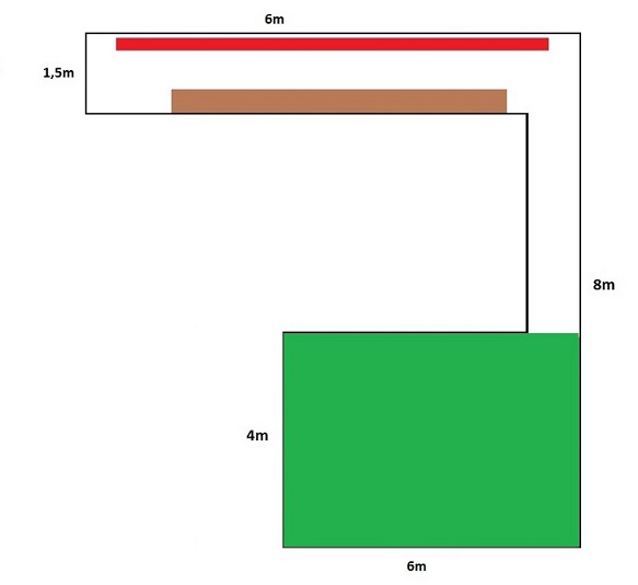Der Grüne Bereich wird noch um 1 m verkürzt. so das ich ca 5m x 4 m habe.