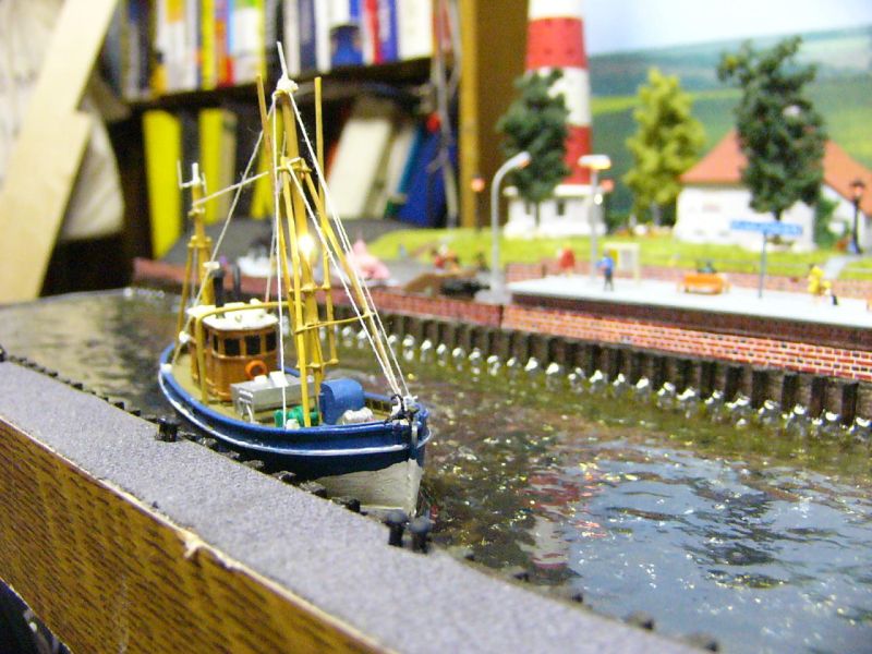 Ich bevorzuge da das Nachträgliche Aufbringen der Wellen z.B. mit Zweikomponentenkleber (wie in den Bildern) oder Window-Color. Ein wenig weiße Farbe dann für die Schaumkronen...