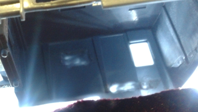 Erst die Routine: Zerlegen. Jetzt zeigt sich, dass der Unterboden mit zwei Zapfen an der Karosserie verklebt ist, allerdings erst, wenn die Zapfen brechen. OK, da wären wir mit dem Messer eh nicht rangekommen.