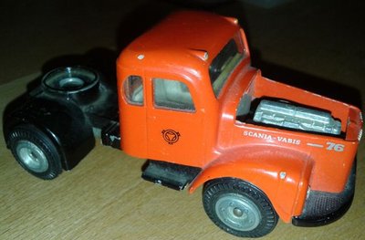 Hier musste ein Lastauto im Etwa-Maßstab von 1:48 aus Sohnemanns Wühlkiste herhalten: die Motorhaube und er Auflieger waren schon länger unauffindbar, also kein unersetzliches Sammlerstück.