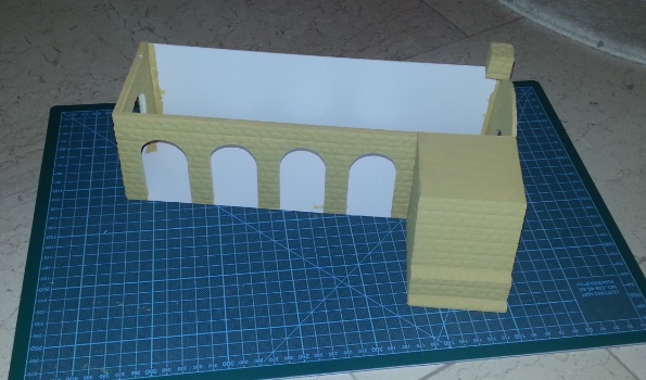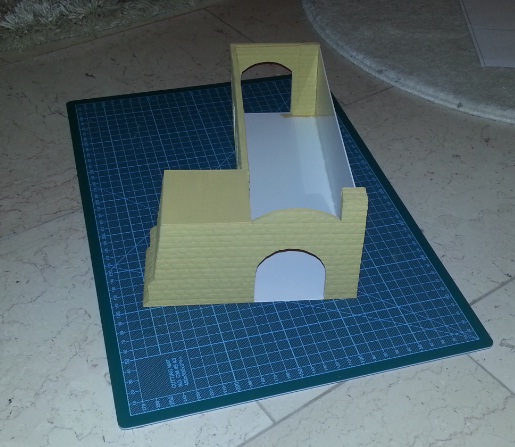 das is nun der Rohbau habe zudem Fassaden lasern lassen mit Steinstruktur die liegen aber im Keller und sind am trocknen die werden auf das Grundgerüst einfach aufgeklebt weiss nur noch nicht genau wie ich das ganze altern lassen soll die Gravur von der Mauer ist leider nur 0,5mm tief habe diese nun vorsichtig mit airbrush gesprayt und nun muss ich mal weiter schauen ob ich evtl mit Pinsel und weißer farbe was drüber gehen kann und dann mit Lasurfarbe es alter aber mal schauen