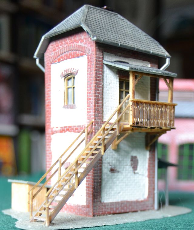 (aus einer Sammelpackung vom Lebensmitteldiscounter, nach Original Faller-Formen unter dem Handelsnamen „Plastoy“ erhältlich, sieht dem Faller-Bausatz 222141 recht ähnlich, jedoch aus Hochglanz-Kunststoff (Der Name PLASTOY ist Programm!