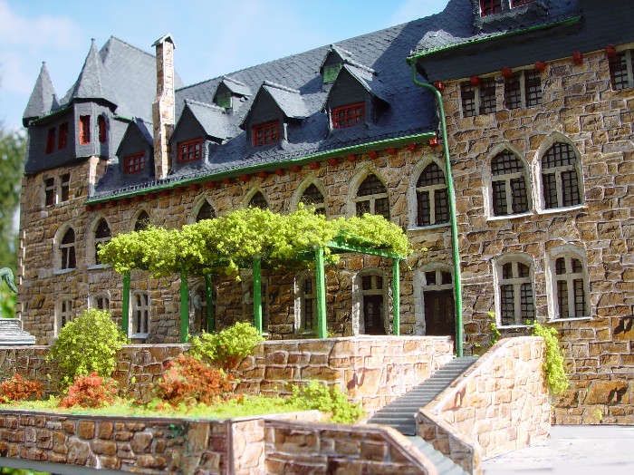 Im Modell lassen sich solch elegante Treppen mit -für H0 1,8 bis 2,0 mm starke- Kartonstreifen bauen,