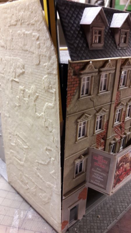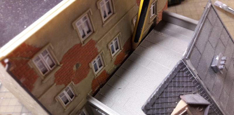 Im Original-Bausatz sind die Teile eher grau in grau gehalten. Eine gezielte Behandlung mit Acrylfarben (Ziegelwerk, Mauer), Metallic-Schreiber (Lüftungsgitter), Lackfarbe (Türen) und - nicht zuletzt - Staubfarben (Dach, Wand) macht auch diese schamhaft versteckte Immobilie zum Schmuckstück. Gruß