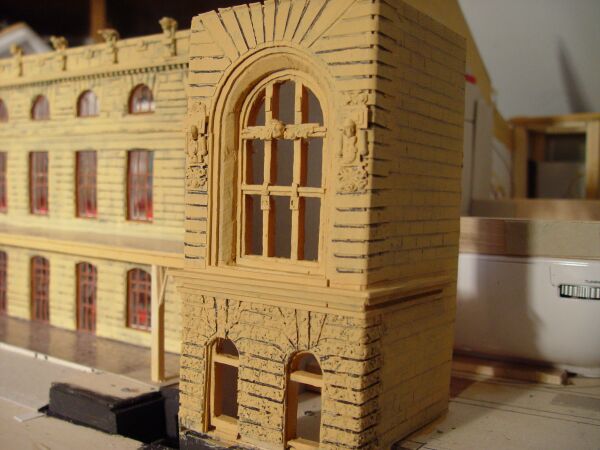 Und auch die vorher beschriebenen Arbeiten mit Hilfe des Bahnsteigs sind gut gelungen. Ein wenig mehr solltest Du zwar vielleicht noch auf die Senkrechten bei den Säulen (...) achten, wenn ich mir diese Anmerkung erlauben darf.