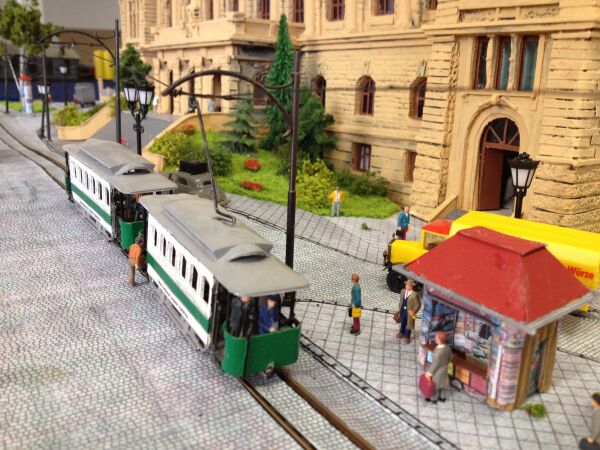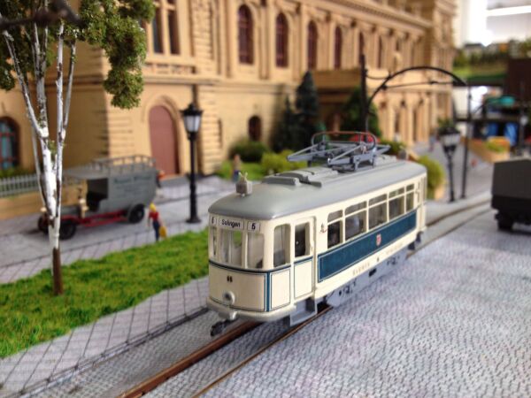Horst Wittmann aus Solingen, über dessen phantastische Straßenbahnanlage die Miba vor vielen Jahren mal ein Sonderheft herausgebracht hat, war so nett, mir eine Straßenbahn zu schenken, die um 1930 vor der Stadthalle gefahren ist.