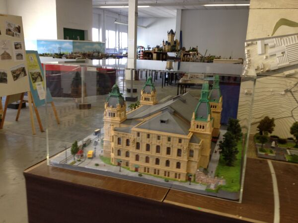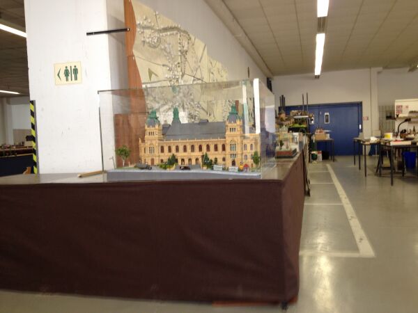 Damit mein Stadthallenmodell keiner anfasst, habe ich es jetzt unter eine Plastikhaube gestellt.
