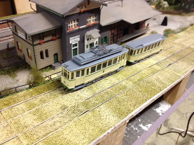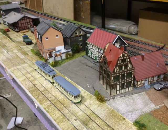 Herr Roos hatte vor, mein Gräfrath-Modell in seine H0-Anlage zu integrieren. Deshalb habe ich mit dem restaurieren gewartet. Nun aber gibt es ja die H0-Anlage von Herrn Roos nicht mehr und ich baue dort eine eigene H0-Anlage auf, in der auch das alte Hafendiorama des inzwischen verstorbenen Klaus Kötter eingebaut sein wird. Des Weiteren wird dort an einem Ende eine Märklin-Nostalgie-Anlage mit M-Gleisen und darüber fahrender Stubbe-Schwebebahn angebaut werden.