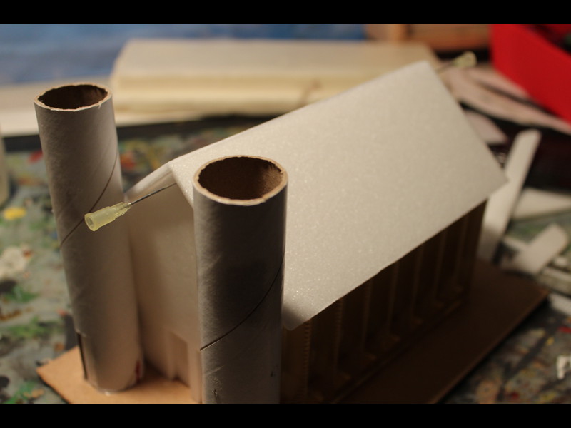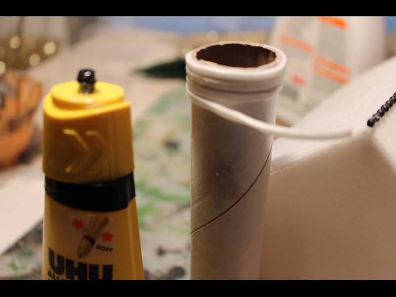 Aus irgendeiner passenden Papprolle werden 2 Türme geschnitten und später vorne aufgeklebt, erst aber nur mal hingestellt:
