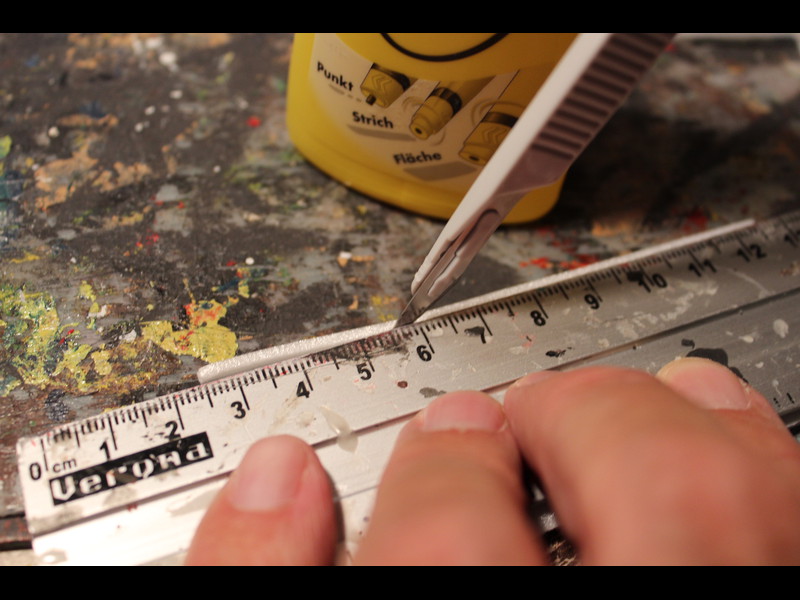 Dann wird eine Schablone für die Kirchenfenster geschnitten: