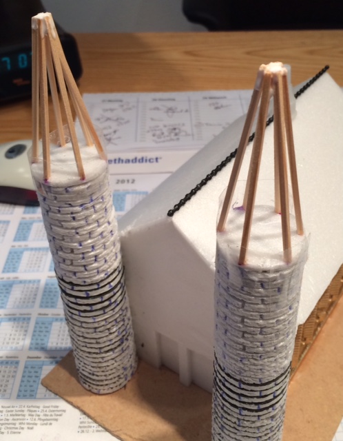 Hier sind die Türme fertig beklebt: